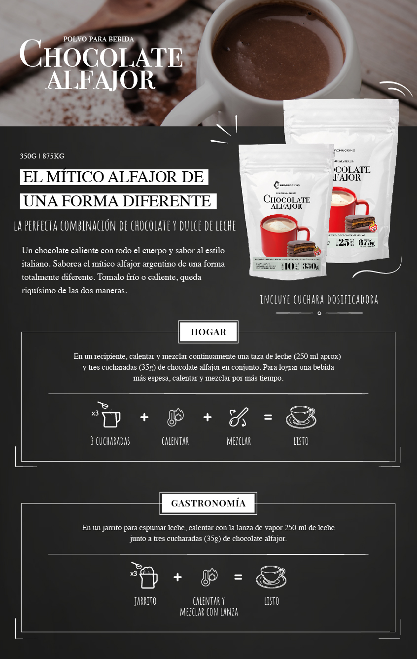 Agregá el sobre Cremuccino de Alfajor.