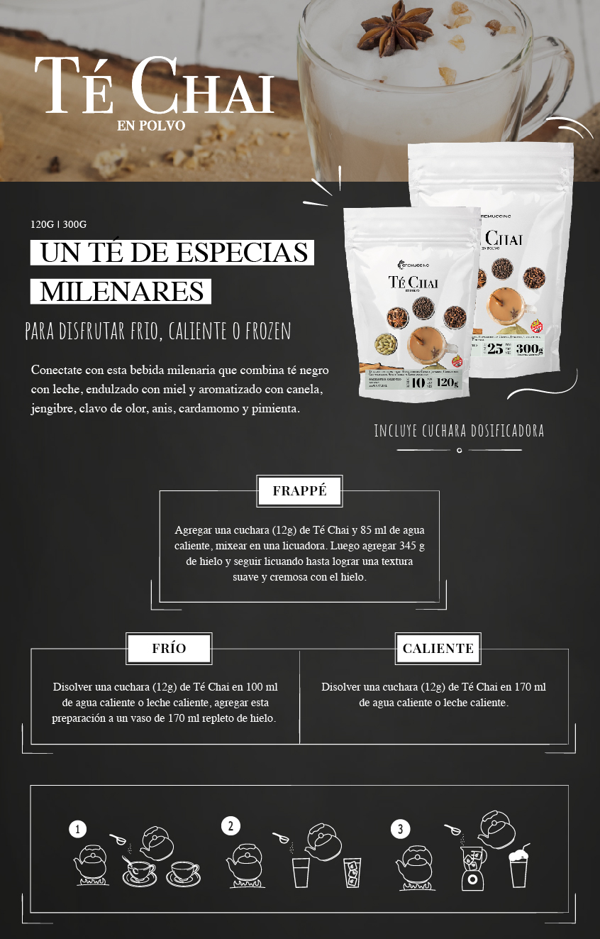 Conectate con esta bebida milenaria que combina té negro con leche endulzado con miel y aromatizado con canela, jengibre, clavo de olor, anis, cardamomo y pimienta. ¡Probalo caliente, frío o frozen!